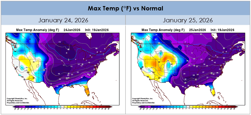 Across the eastern two-thirds of the nation, frigid temperatures will drive a drop in commercial activity beginning this weekend, and those in the Southern and Eastern U.S. are also expected to see significant ice and snow from a major winter storm. Wintry weather as far south as the Gulf Coast will shift regional demand toward immediate preparedness and winter-essential categories.
