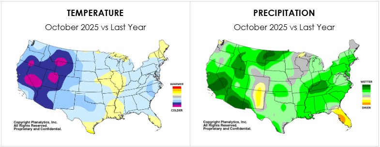 For the month overall, temperatures were cooler than last year and the coolest since 2020. Precipitation levels were the highest since 2021, though there was no significant snowfall and no hurricanes hit the U.S. mainland.